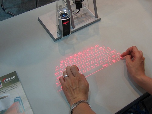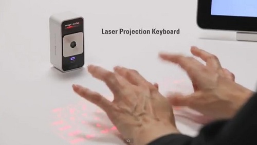 Celluon Magic Cube 是一款通過激光影射在桌面的虛擬鍵盤及鼠標(biāo),簡(jiǎn)約的 QWERTY 布局,沒有數(shù)字鍵盤,每分鐘最多能支持 350 個(gè)字符的輸入。投影芯片會(huì)跟蹤人體手指動(dòng)作,分辨出輸入文字或是滑動(dòng)鼠標(biāo)操作。需要使用 Micro USB 接線進(jìn)行充電、支持藍(lán)牙 2.0 HID 配對(duì)。我們可以將它連接在臺(tái)式機(jī)、筆記本電腦、iPad、iPhone 和帶有藍(lán)牙 HID 功能的安卓設(shè)備上,即插即用,且小巧的體積很方便攜帶,裝在兜里就能帶走了。