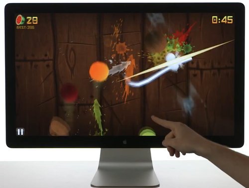 Leap 看上去只有一包口香糖的大小,僅由傳感器和攝像頭兩部分組成。Leap 沒有 Kinect 高昂的售價(jià),也不需要額外購(gòu)買 XBOX,更不需要足夠大的室內(nèi)空間,但 Leap Motion 的人卻自稱精確度是 Kinect 的 200 倍,可見對(duì)產(chǎn)品的信心。Leap 的操作很簡(jiǎn)單,USB 連接電腦后,傳感器上方會(huì)創(chuàng)造出一個(gè) 4 立方英尺的空間,將手置于其中,然后就可以進(jìn)行多種手勢(shì)操作了,顯然這樣切水果的方式要比在觸屏上玩耍更有樂趣。另外 Leap Motion 專門為開發(fā)者提供了 SDK,以便于今后有更多適用的 App。