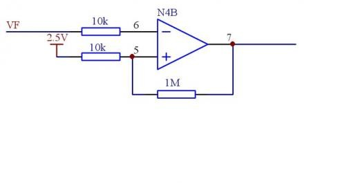 在下圖中,1M電阻就起到滯環(huán)的作用,如果沒有1M電阻,很明顯,VF電壓達(dá)到2.5V運(yùn)放輸出低電平,低于2.5V,運(yùn)放輸出高電平。增加1M電阻后,在運(yùn)放輸出低電平時(shí),6腳電平為0.7+(2.5-0.7)*1000/1010=2.48V。當(dāng)VF低于6腳電平后,7腳輸出高電平(如果運(yùn)放供電15V,7腳輸出可按照14V計(jì)算)可以計(jì)算此時(shí)6腳電平為2.5+(14-2.5)*10/1010=2.61V,如果這是一個(gè)輸入欠壓保護(hù)電路,且VF為100:1的取樣,則當(dāng)輸入電壓高于261V,電路正常工作,當(dāng)電壓低于248V才會欠壓保護(hù),這樣就增強(qiáng)了保護(hù)電路的抗干擾能力。
