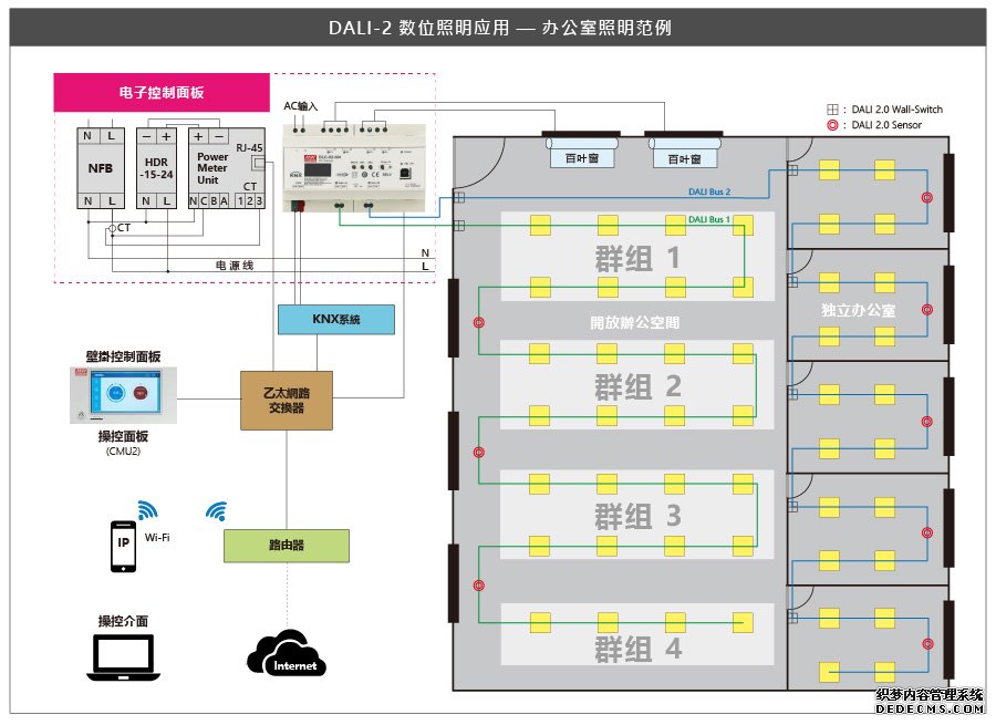 - 2組獨(dú)立DALI總線,可接Control Gear及Control Device搭配使用