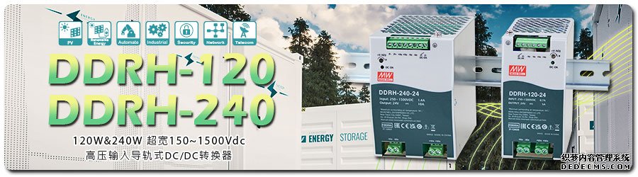 近年來光伏、儲能…等再生能源相關(guān)行業(yè)需求驟增,明緯繼推出DDRH-60、RSDH-150/300后(詳如下表),緊接著新上市120W/240W超寬250~1500Vdc高壓輸入導軌式DC-DC轉(zhuǎn)換器~ DDRH-120/240系列。